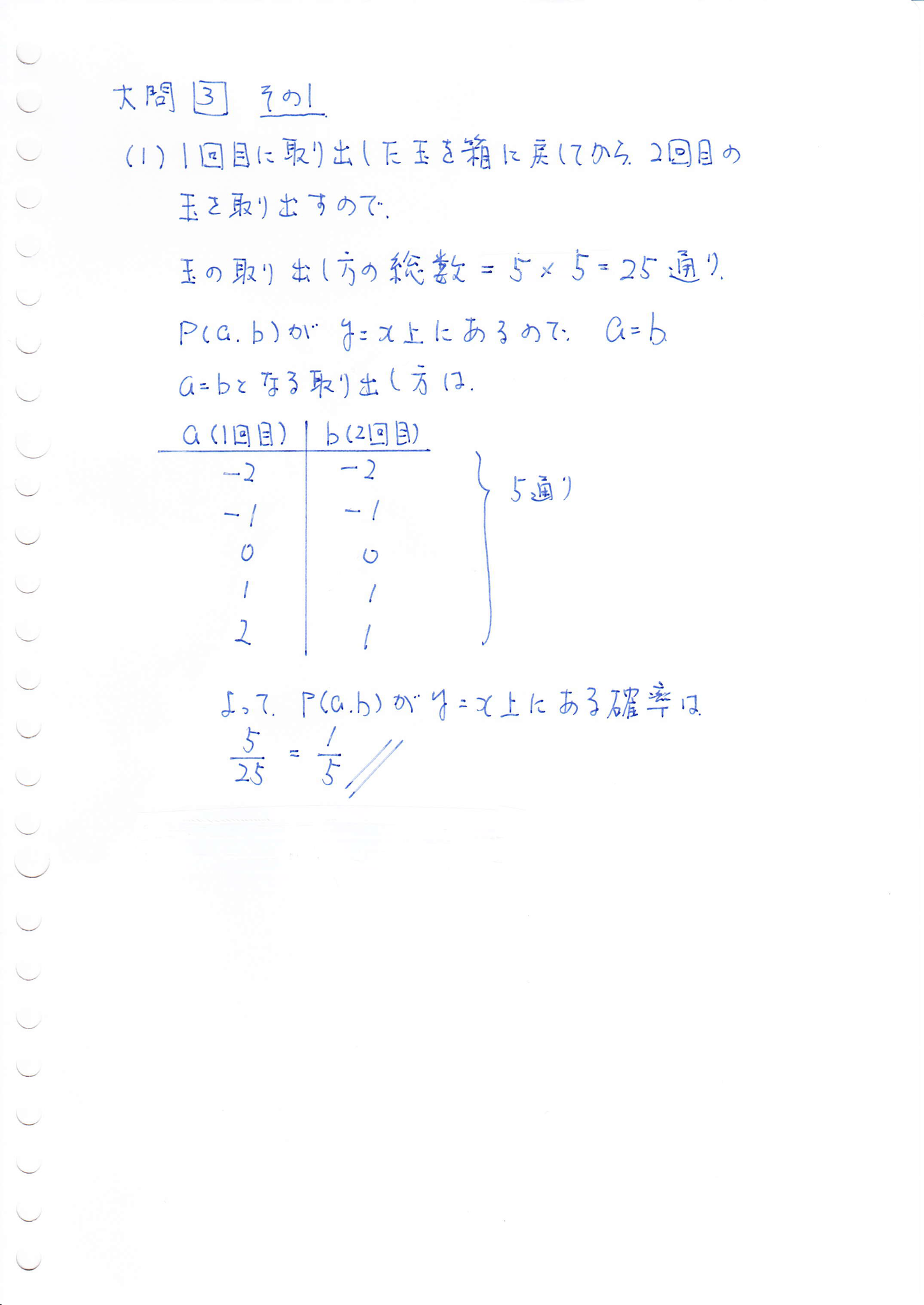(1)取り出した数 (a,b) が y=x 上にあるので、a=b、つまり、1回目と2回目が同じである取り出し方を数えます。