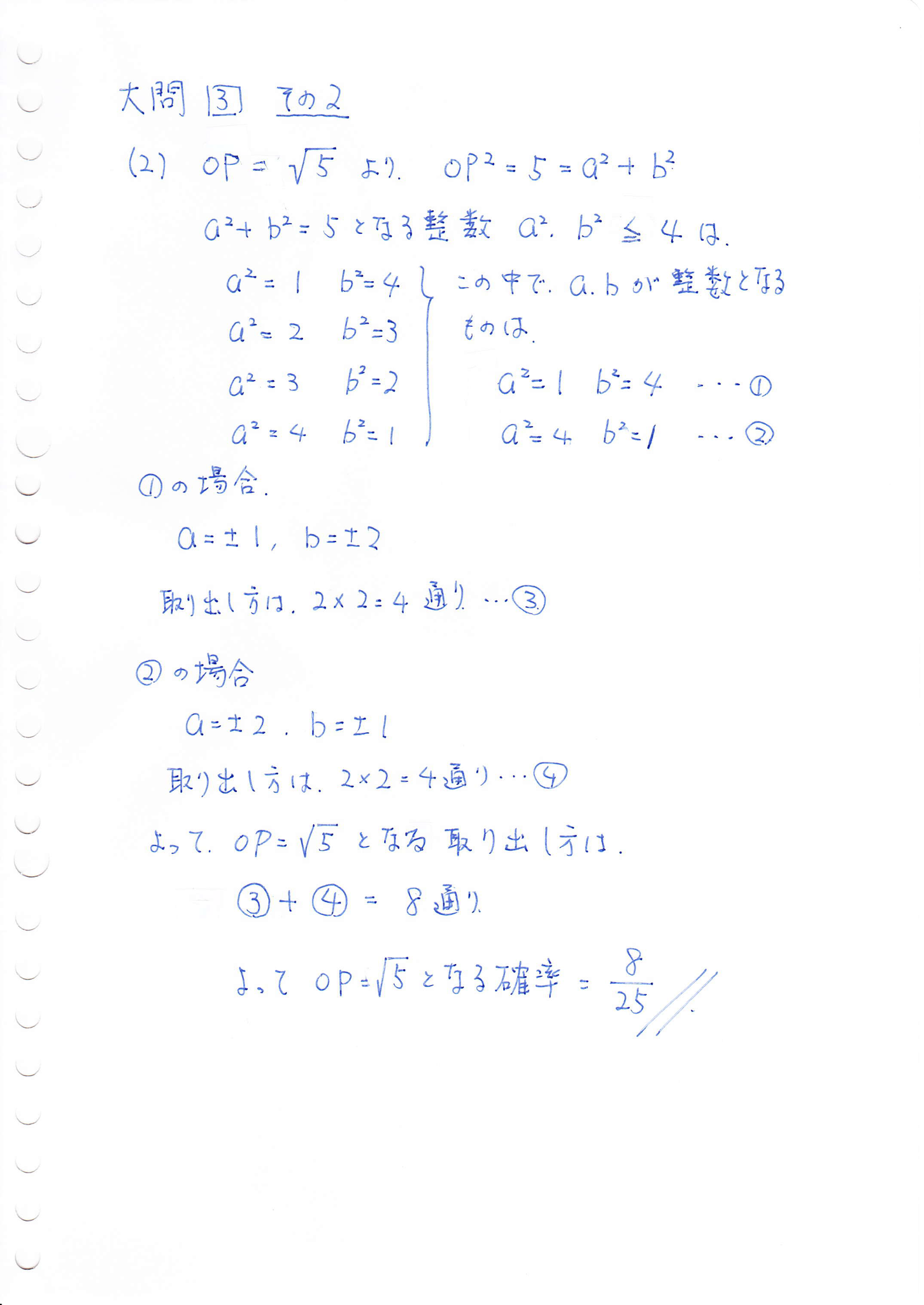 (2)三平方の定理を使って考えます。2乗の和が5となる整数の組み合わせ(a,b)を数えます。